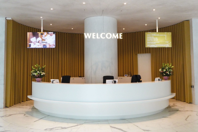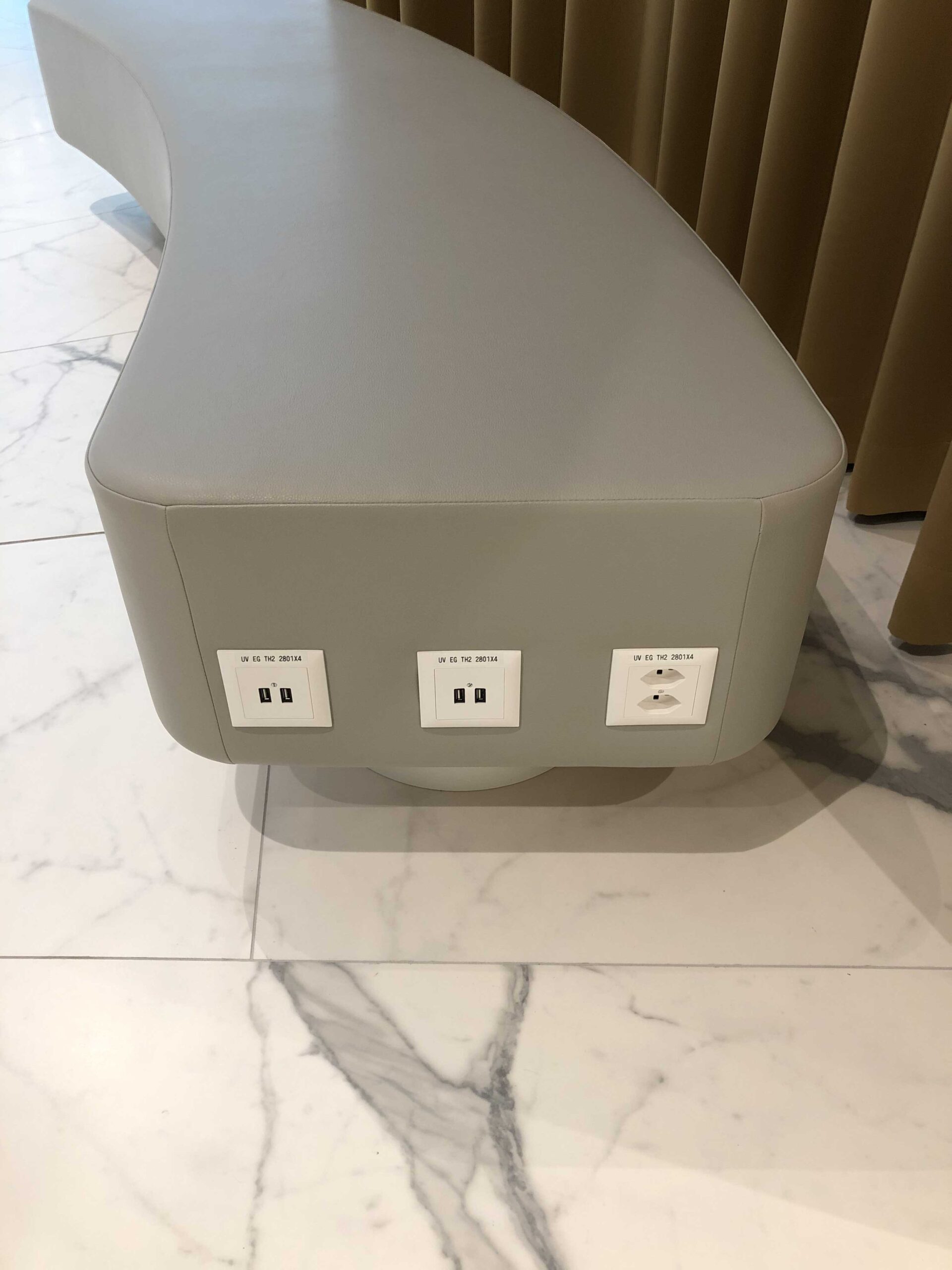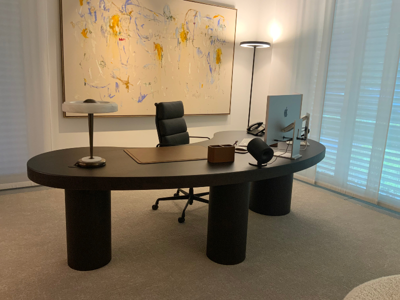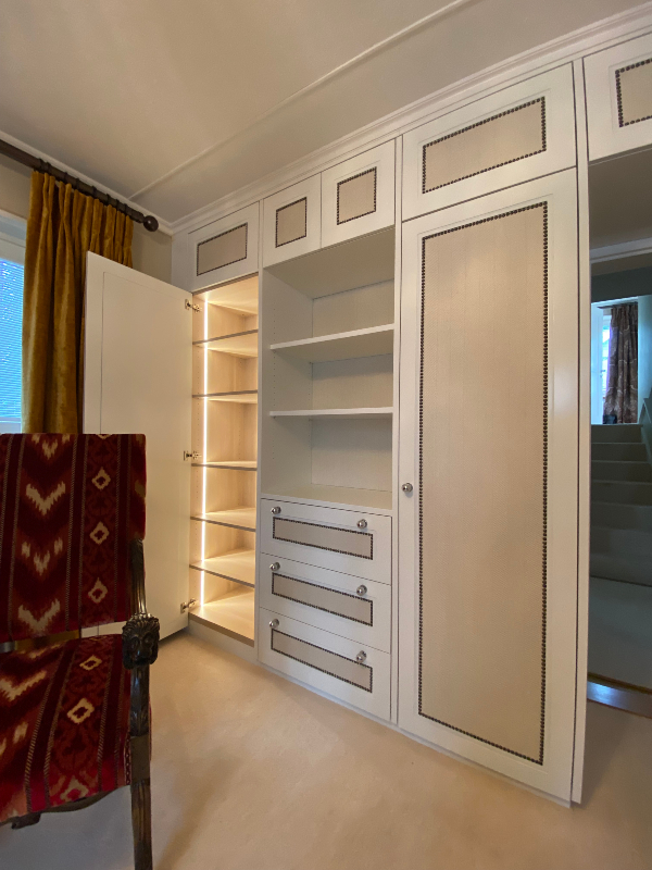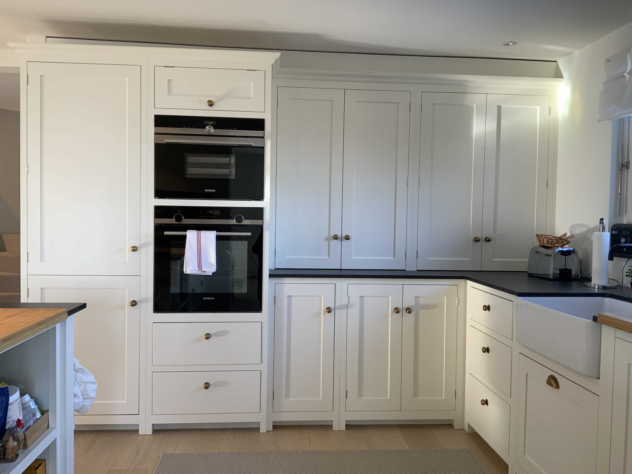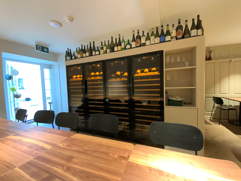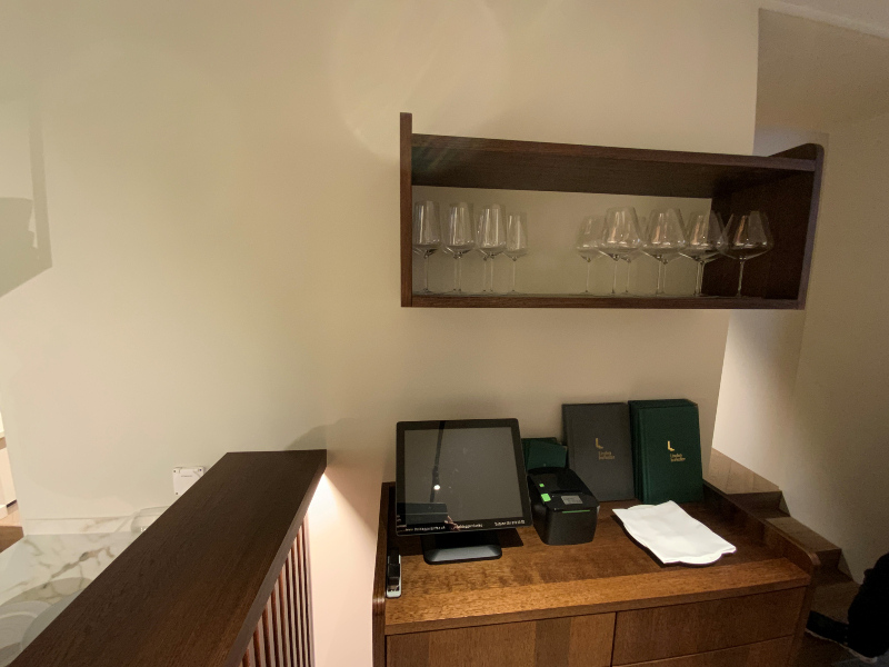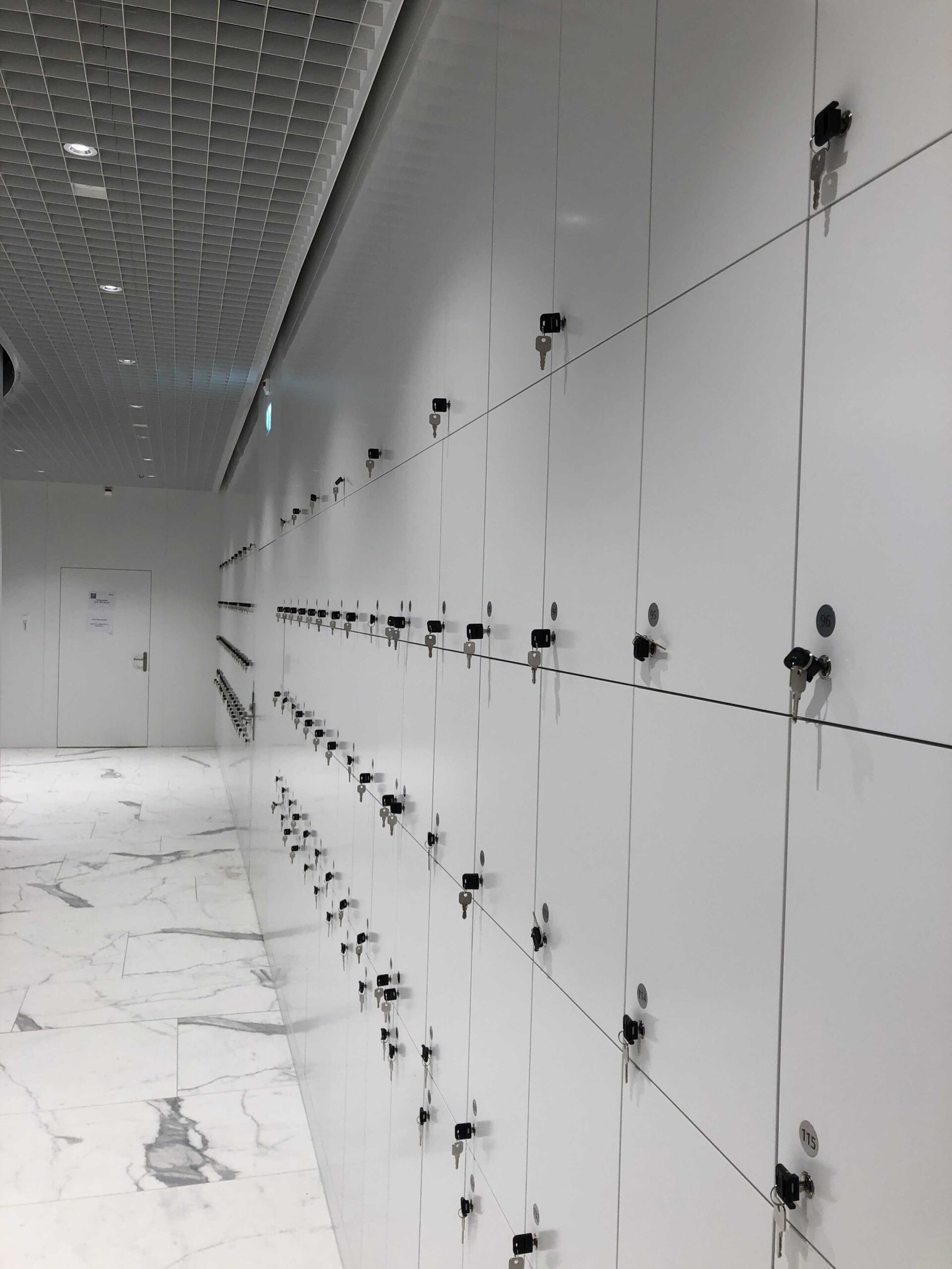 gesamter Praxisausbau in hochwertigem Nussbaum kombiniert mit weissen Möbeloberflächen